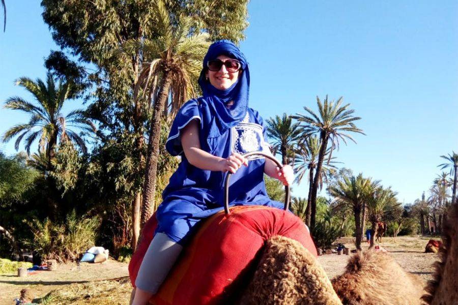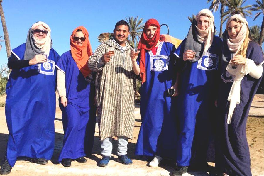 •穿越骆驼背上的棕榈路,穿上撒哈拉服饰。
