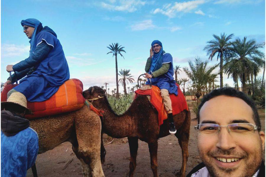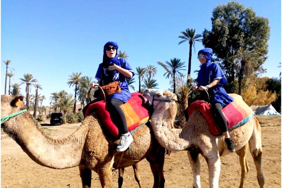 •骑骆驼,欣赏穿过绿洲Palmeraie的另一景。