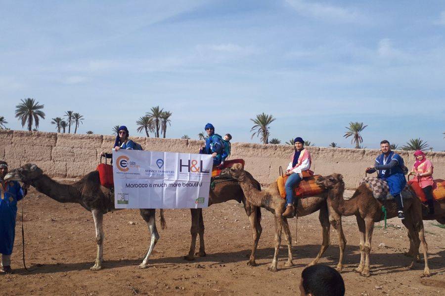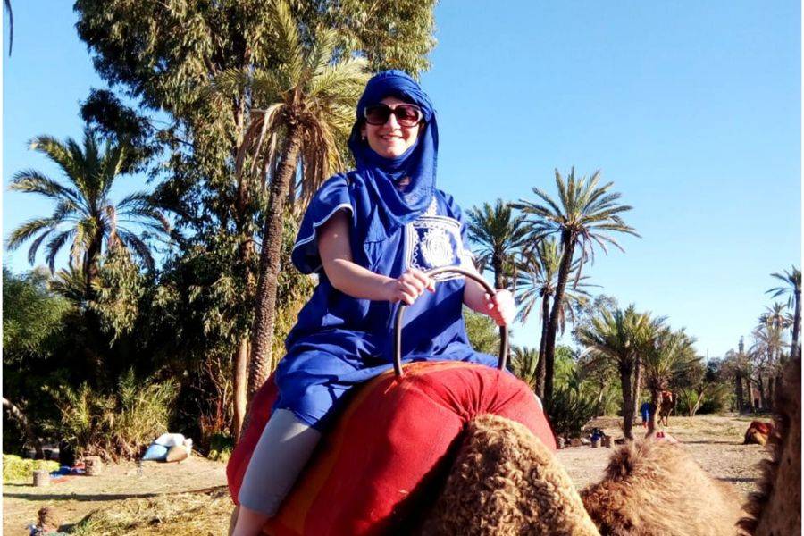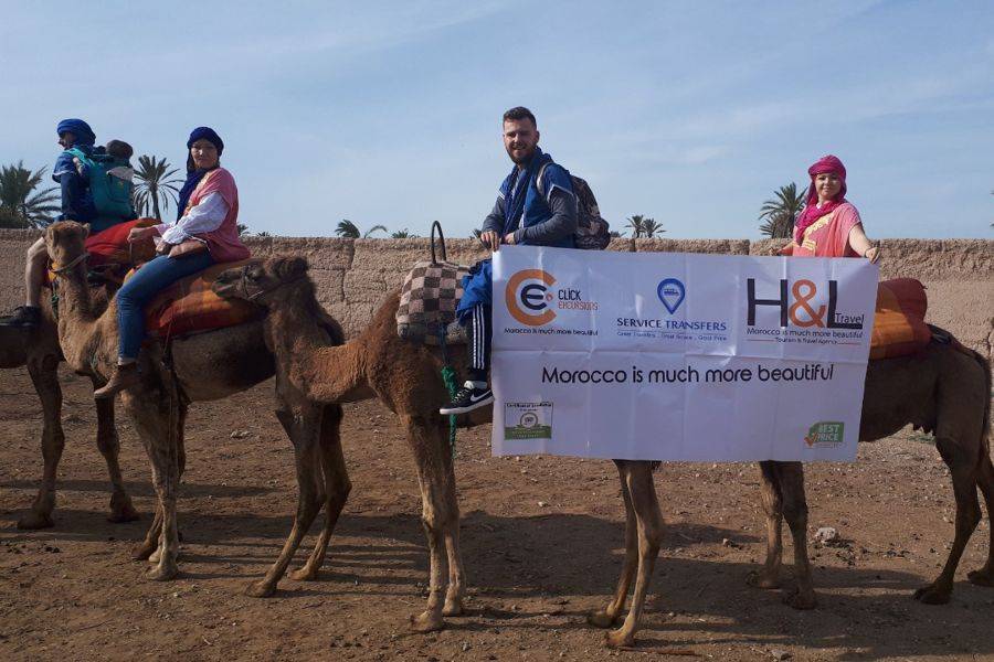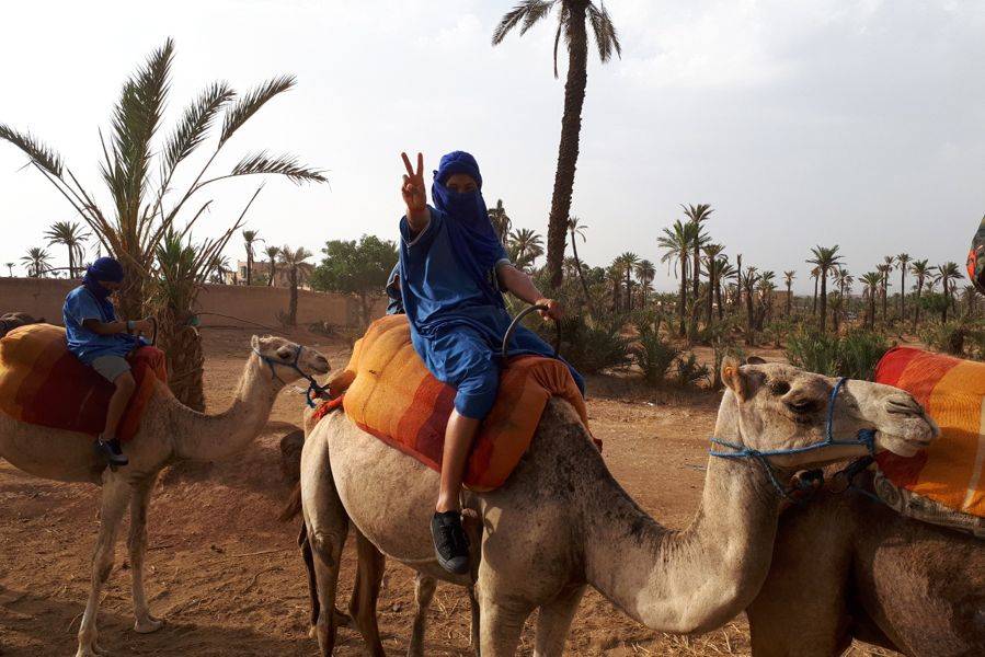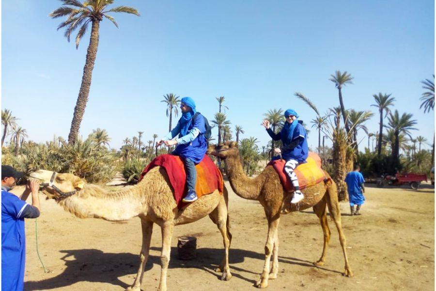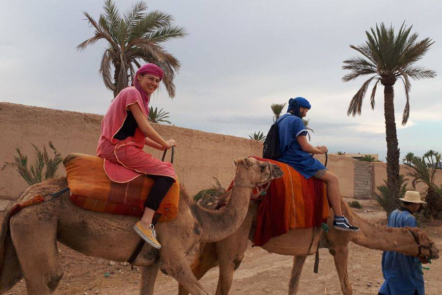 •在骆驼的背面发现马拉喀什的棕榈树林.
