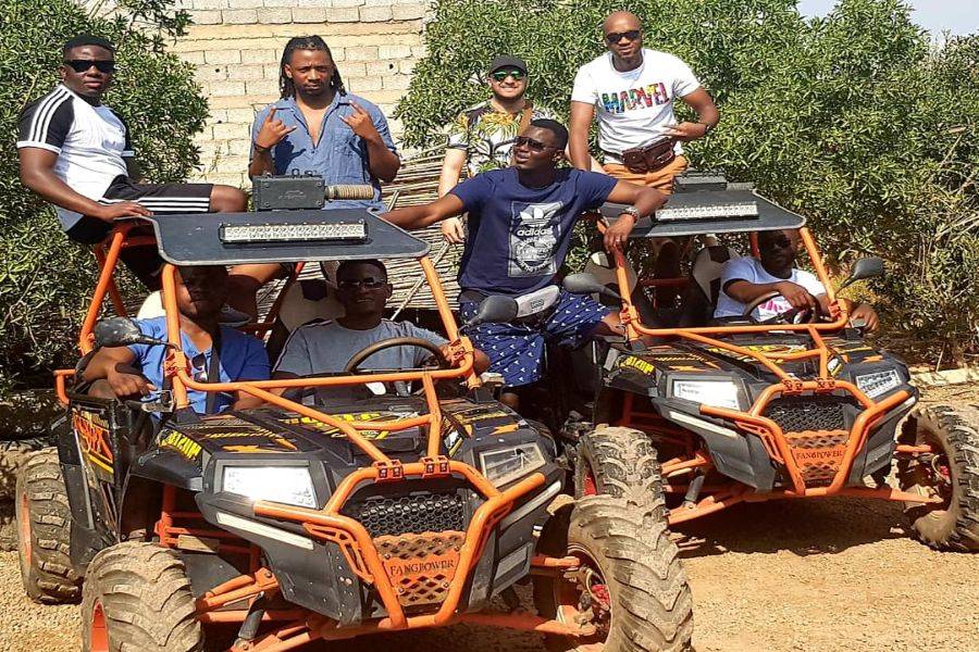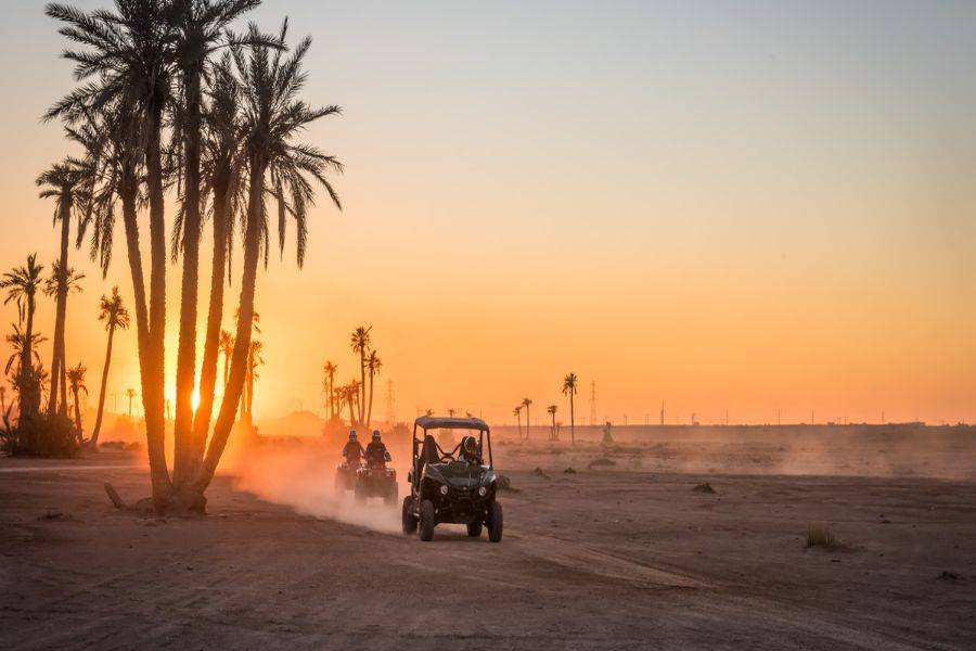 •欣赏马路的美景,并为在马拉喀什的棕榈树中骑越野车感到兴奋.