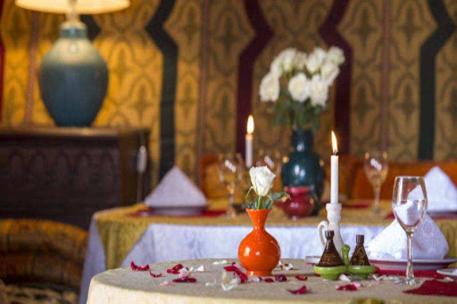 •与摩洛哥美食一起在马拉喀什麦地那内的美妙里亚德晚餐中放松身心