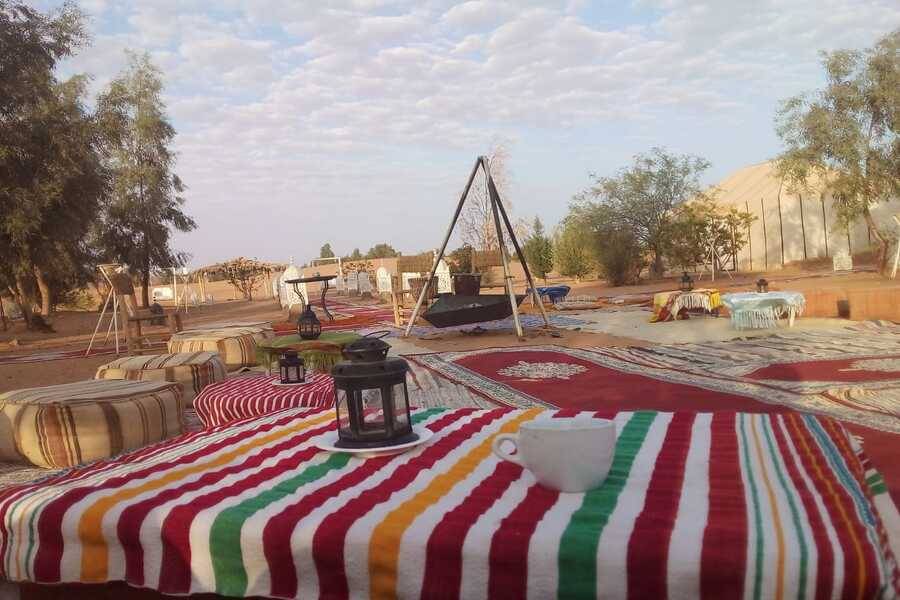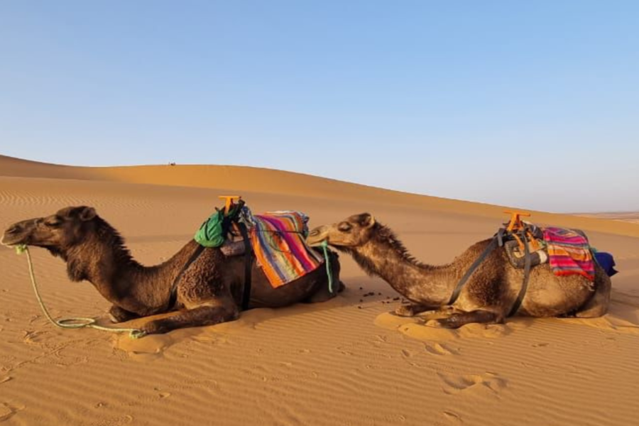 从 Merzouga 骑骆驼到 Erg Chebbi,在柏柏尔沙漠营地的星空下享用晚餐