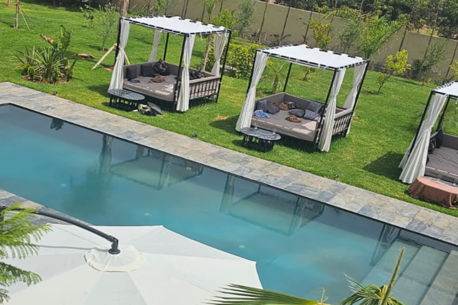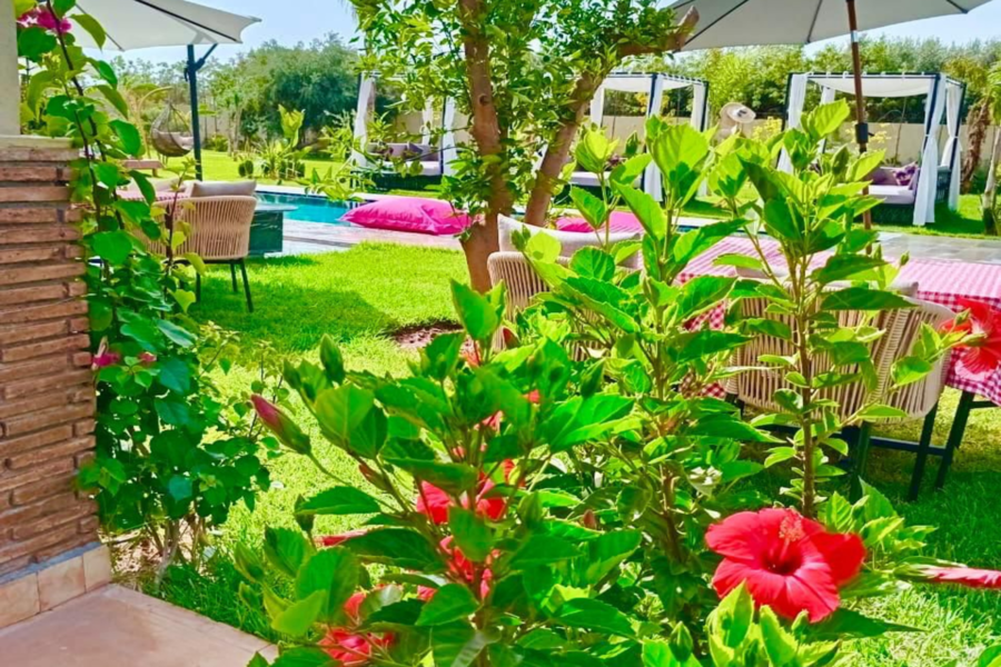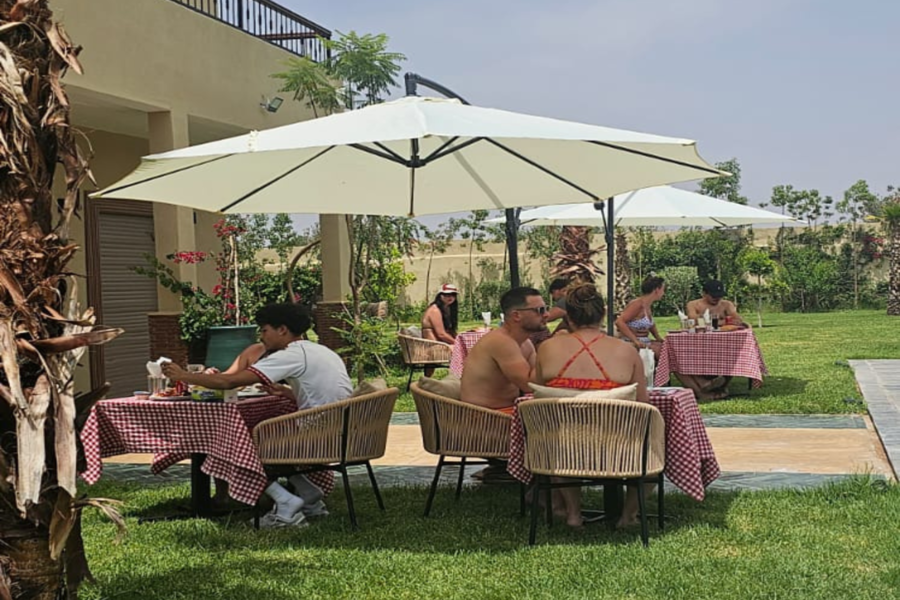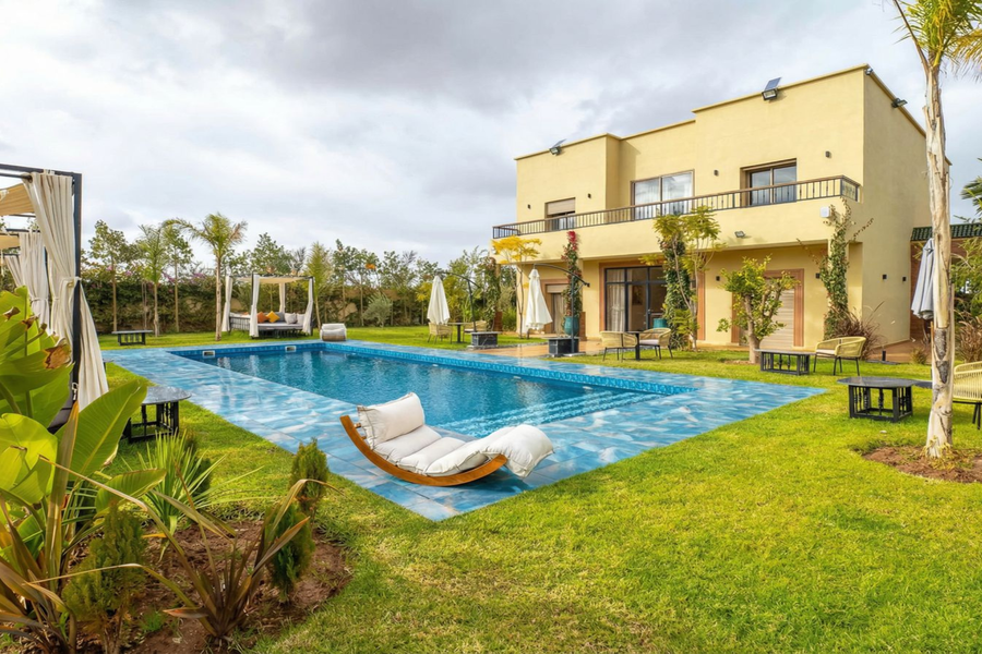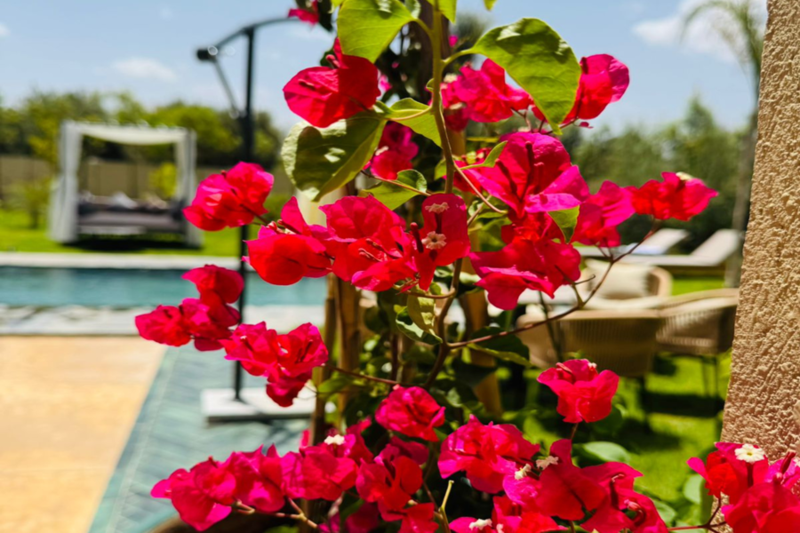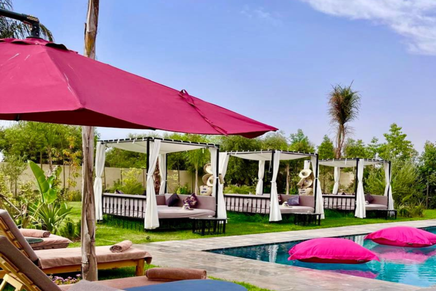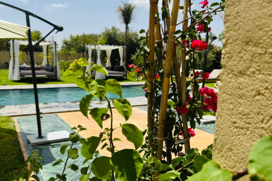 在我们阳光明媚的别墅放松身心:畅游、水疗、享用美食午餐,饱览壮丽的阿特拉斯山脉美景