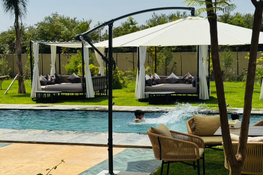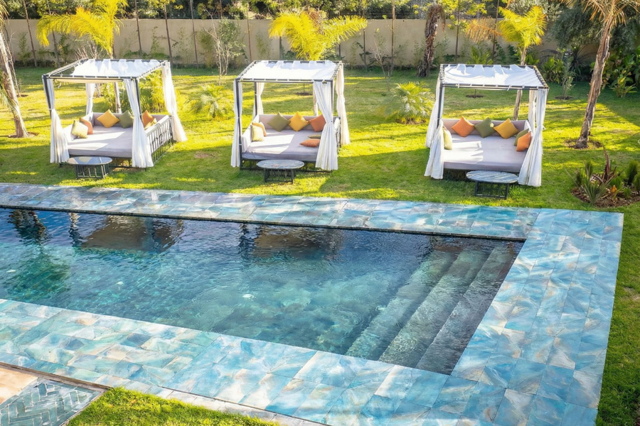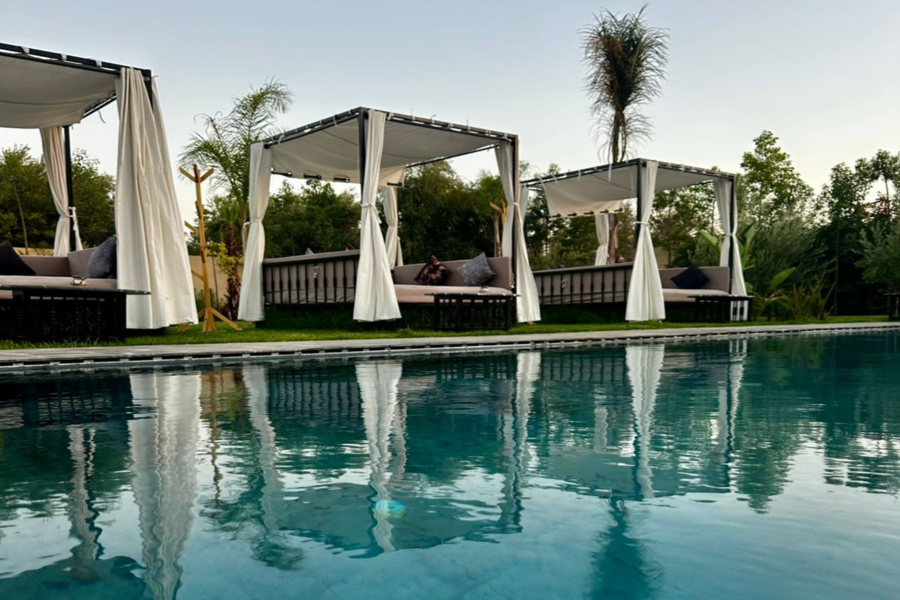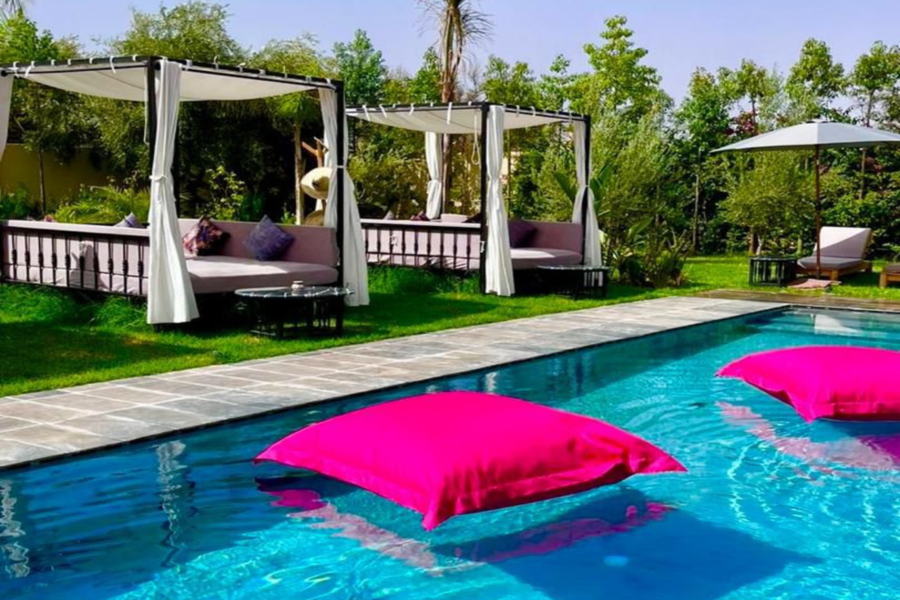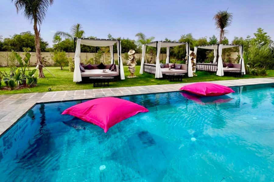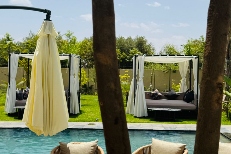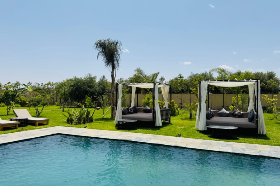 在我们阳光明媚的别墅放松身心:畅游、水疗、享用美食午餐,饱览壮丽的阿特拉斯山脉美景