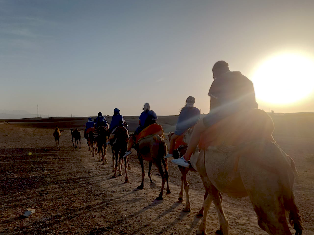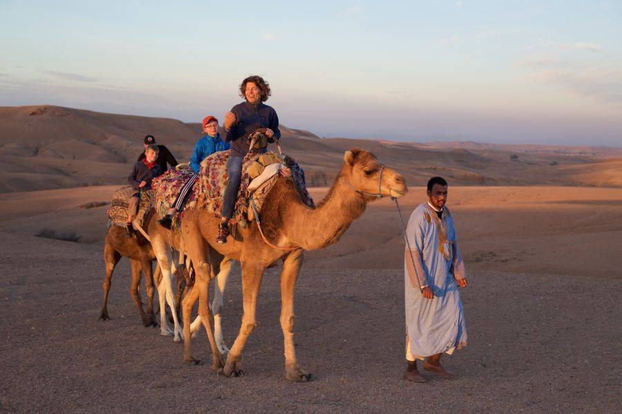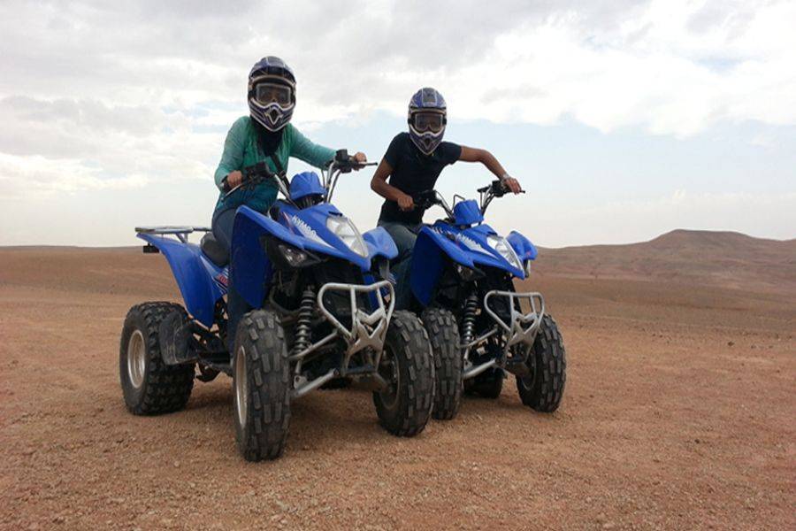 在阿法菲洛基沙漠骑骆驼和四轮摩托