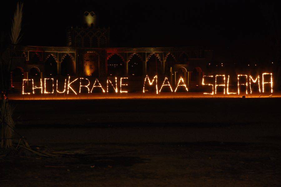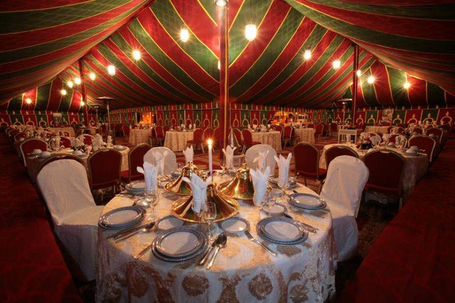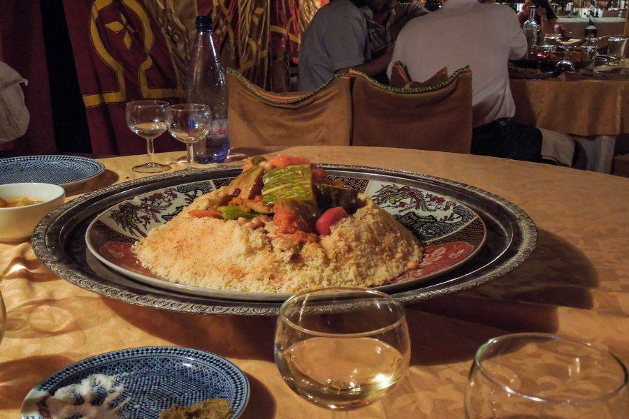 •坐在棕榈树林中坐下来品尝摩洛哥传统美食