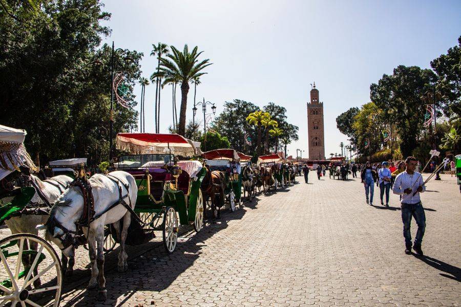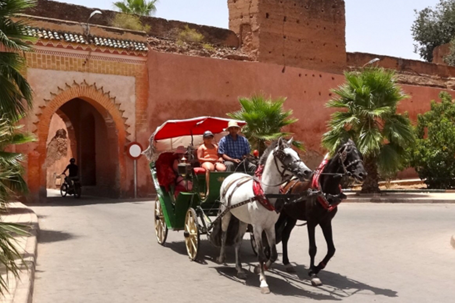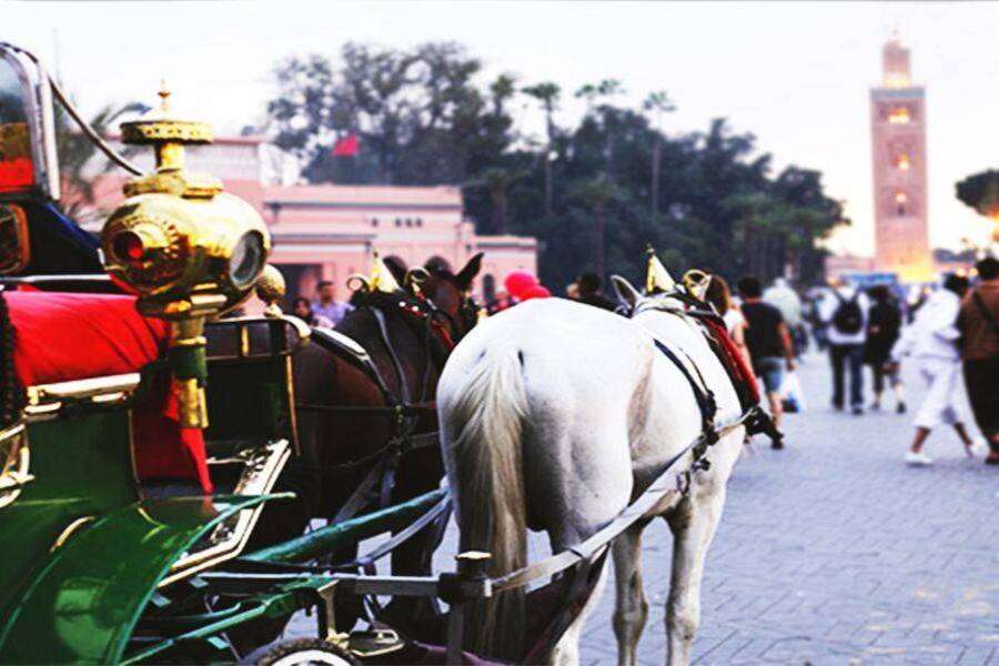 •乘坐马拉车穿越马拉喀什著名的历史古迹,探索红色小镇.