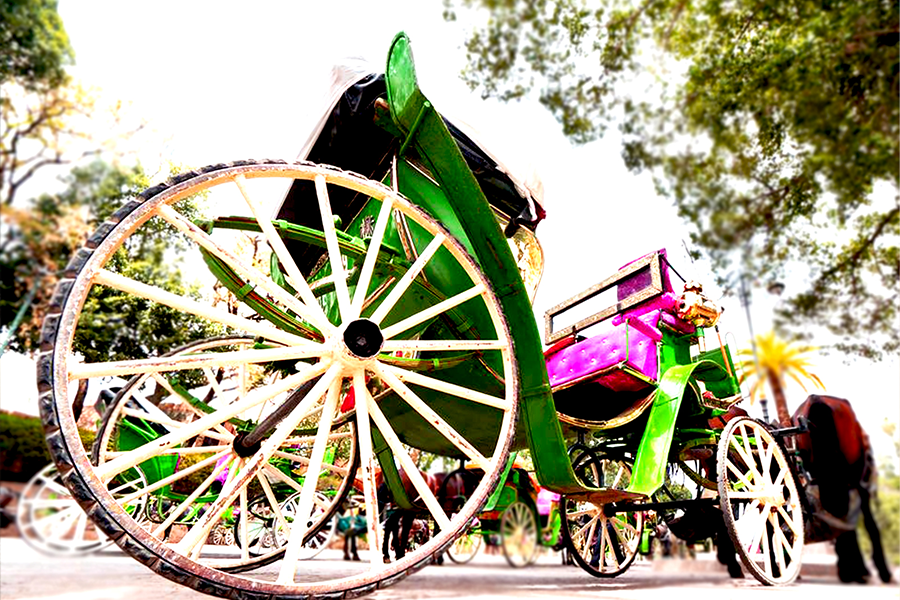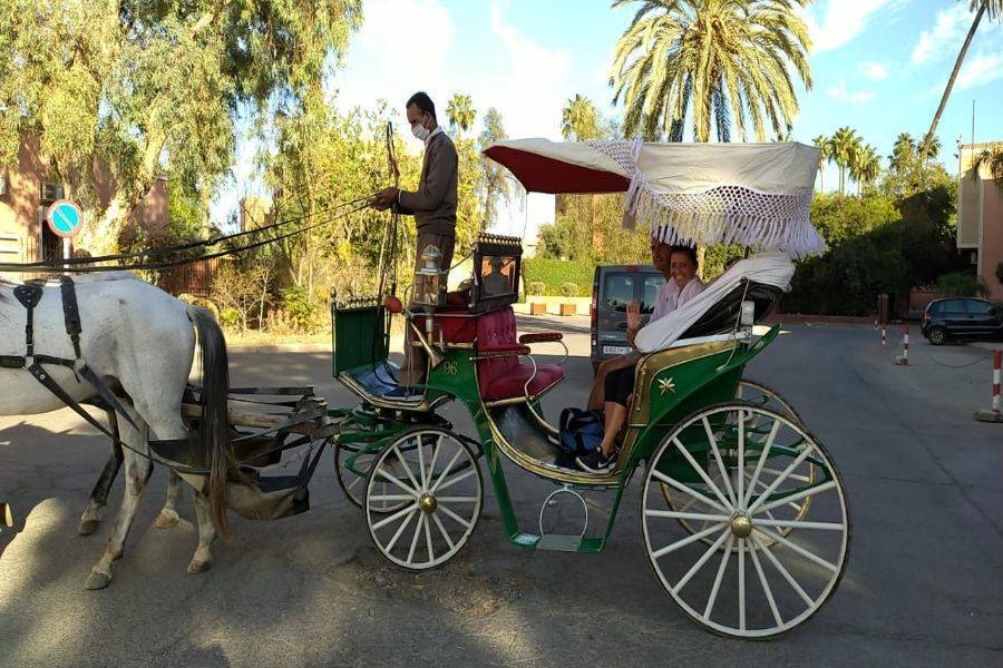 •在马车上享受片刻,欣赏旧麦地那马拉喀什的怀旧景色.
